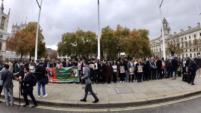 প্রহসনের মাধ্যমে দেশের আইনি কাঠামোকে প্রভাবিত করে রাজনৈতিক বন্দীদের বেআইনি বিচারের প্রতিবাদে যুক্তরাজ্য বঙ্গবন্ধু আইনজীবী পরিষদ গত মঙ্গলবার ব্রিটিশ ওয়েস্টমিনিস্টার পার্লামেন্টের সামনে একটি প্রতিবাদ সমাবেশের আয়োজন করে ।