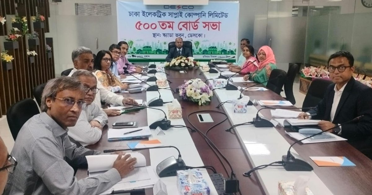 ঢাকা ইলেকট্রিক সাপ্লাই কোম্পানি লিমিটেডের (ডেসকো) ৫০০তম বোর্ড সভা অনুষ্ঠিত হয়েছে। রবিবার (২৩ মার্চ) বিকাল ৩টায় মিরপুরের ডেসকো’র স্ক্যাডা সেন্টারে অনুষ্ঠিত হয়। ডেসকোর পাঠানো এক সংবাদ বিজ্ঞপ্তিতে এ তথ্য জানানো হয়।