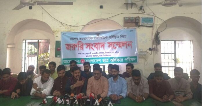 রবিবার (২ ফেব্রুয়ারি) বিকাল সাড়ে ৩টায় ঢাকা বিশ্ববিদ্যালয়ের মধুর ক্যান্টিনে এক সংবাদ সম্মেলনে এই দাবি জানান ছাত্র অধিকার পরিষদের কেন্দ্রীয় সভাপতি বিন ইয়ামিন মোল্লা।