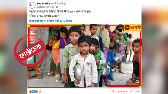 সুতরাং একদল শিশুর থালা-বাটি হাতে সারিবদ্ধভাবে দাঁড়িয়ে থাকার ছবিটি বাংলাদেশের সঙ্গে সম্পৃক্ত নয়। প্রকৃতপক্ষে, ২০২০ সালে কোভিড-১৯ চলাকালীন ভারতের নয়াদিল্লিতে একটি বস্তির শিশুরা বিনা মূল্যে খাবার নিতে সারিবদ্ধভাবে দাঁড়িয়ে থাকার ছবি বাংলাদেশের মানুষের দারিদ্র্যসীমার নিচে বসবাসের বিষয়ে সংবাদ প্রতিবেদনে যুক্ত করা হয়েছে।