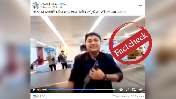 শাহজালাল আন্তর্জাতিক বিমানবন্দর থেকে প্রবাসীর স্বর্ণ চুরি হয়েছে— এমন দাবিতে সম্প্রতি একটি ভিডিও সম্প্রতি সোশ্যাল মিডিয়ায় ছড়িয়ে পড়েছে। ভিডিওটি বিভিন্ন ফেসবুক অ্যাকাউন্ট ও পেজ থেকে প্রায় একই ক্যাপশনে ছড়ানো হয়েছে।
