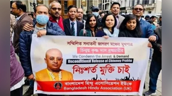 বাংলাদেশ সম্মিলিত সনাতনী জাগরণ জোটের সাবেক মুখপাত্র চিন্ময় কৃষ্ণ দাস ব্রহ্মাচারীর মুক্তির দাবিতে মানববন্ধন করেছে বাংলাদেশ হিন্দু এসোসিয়েশন-ইউকে।